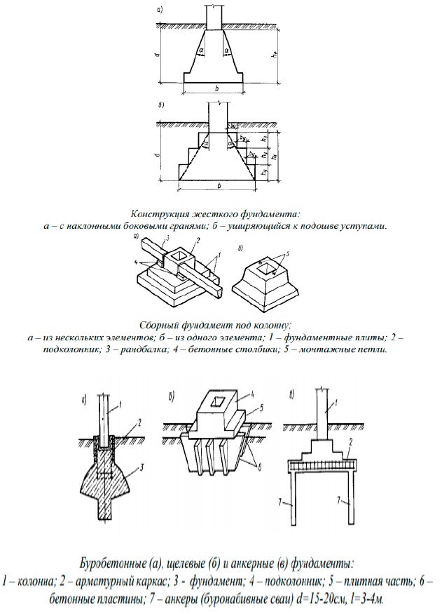 - отдельно стоящие фундаменты (строения с полным или неполным каркасом);