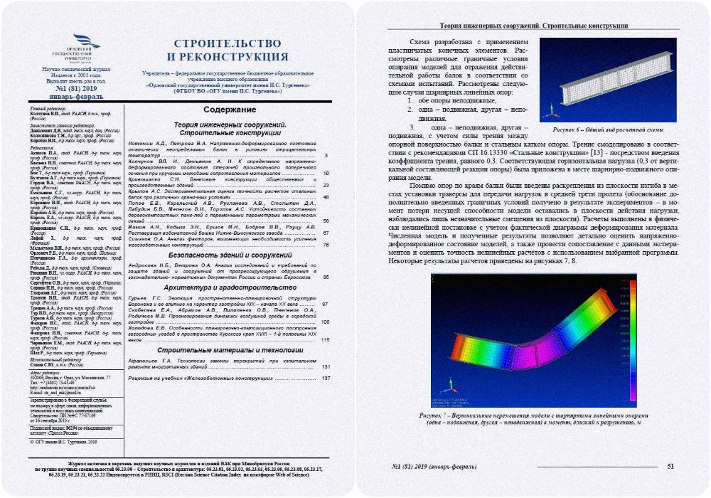 Научно-технический журнал «Строительство и реконструкция» №1 (81) 2019